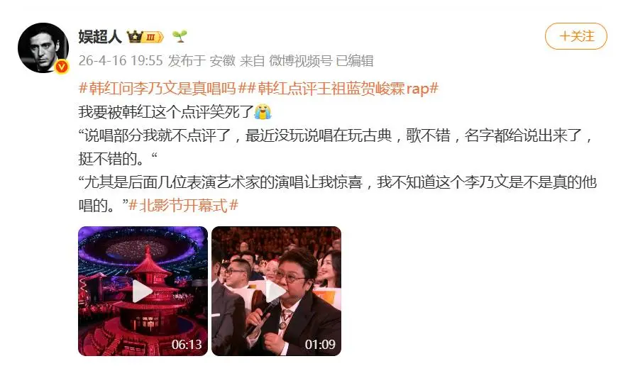 一场电影节的开幕式,因为一句“不知道是不是真唱”的调侃,意外变成了演员跨界实力的认证现场。韩红这波操作,再次证明了什么叫“点评界的语言艺术”。