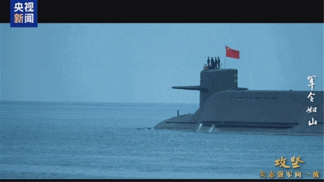 (央视视频截图,茫茫深海中,中国潜艇正在执行远航任务)